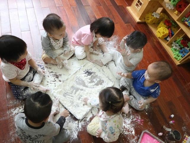 - Chơi cùng trẻ: ném bóng, chuyền bóng, đá bóng, vẽ, nhặt xếp đồ chơi,…