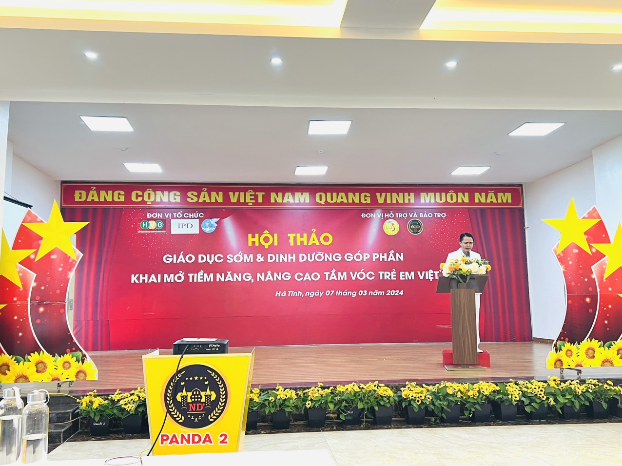 Sáng ngày 7/03/2024 tại Thành phố Hà Tĩnh, Hội Giáo dục chăm sóc sức khỏe cộng đồng Việt Nam - Viện Nghiên cứu giáo dục phát triển tiềm năng con người (IPD) phối hợp với Hội LHPN thành phố Hà Tĩnh cùng Tập đoàn Khoa học công nghệ Hoàng Việt đã tổ chức thành công hội thảo "Giáo dục sớm và dinh dưỡng góp phần khai mở tiềm năng, nâng cao tầm vóc trẻ em Việt".
