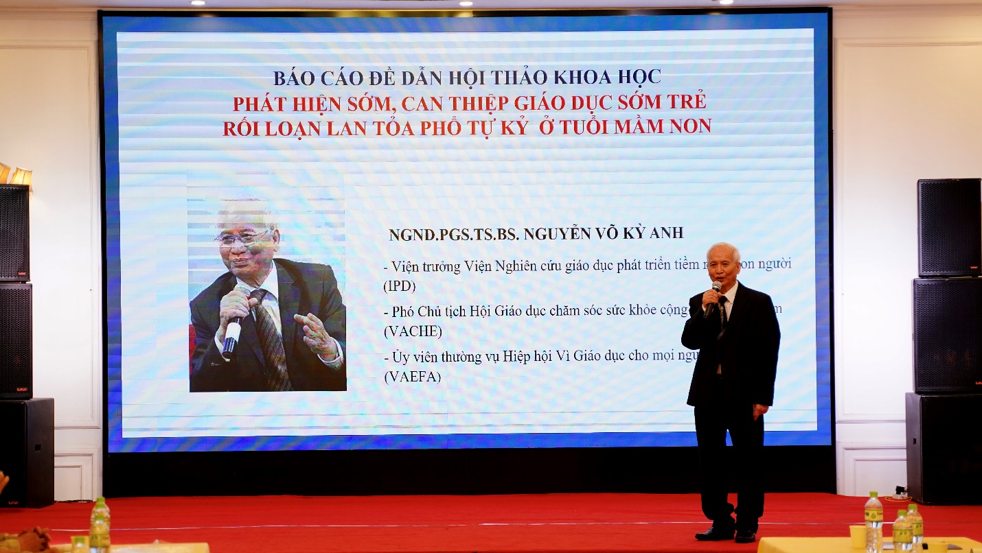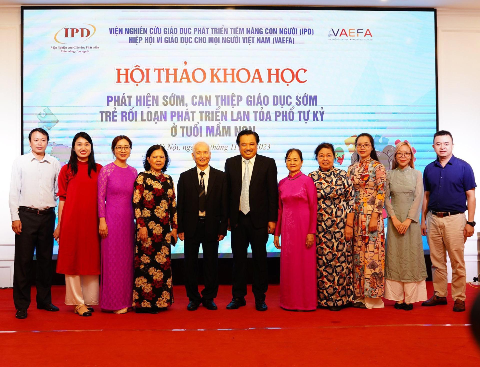 Sáng ngày 9/11/2023, tại Hà Nội, Viện Nghiên cứu giáo dục phát triển tiềm năng con người (IPD) trực thuộc Trung ương Hội Giáo dục chăm sóc sức khỏe cộng đồng Việt Nam phối hợp với Hiệp hội Vì Giáo dục cho mọi người Việt Nam (VAEFA) tổ chức Hội thảo khoa học "Phát hiện sớm, can thiệp giáo dục sớm trẻ rối loạn lan tỏa phổ tự kỷ ở tuổi mầm non".