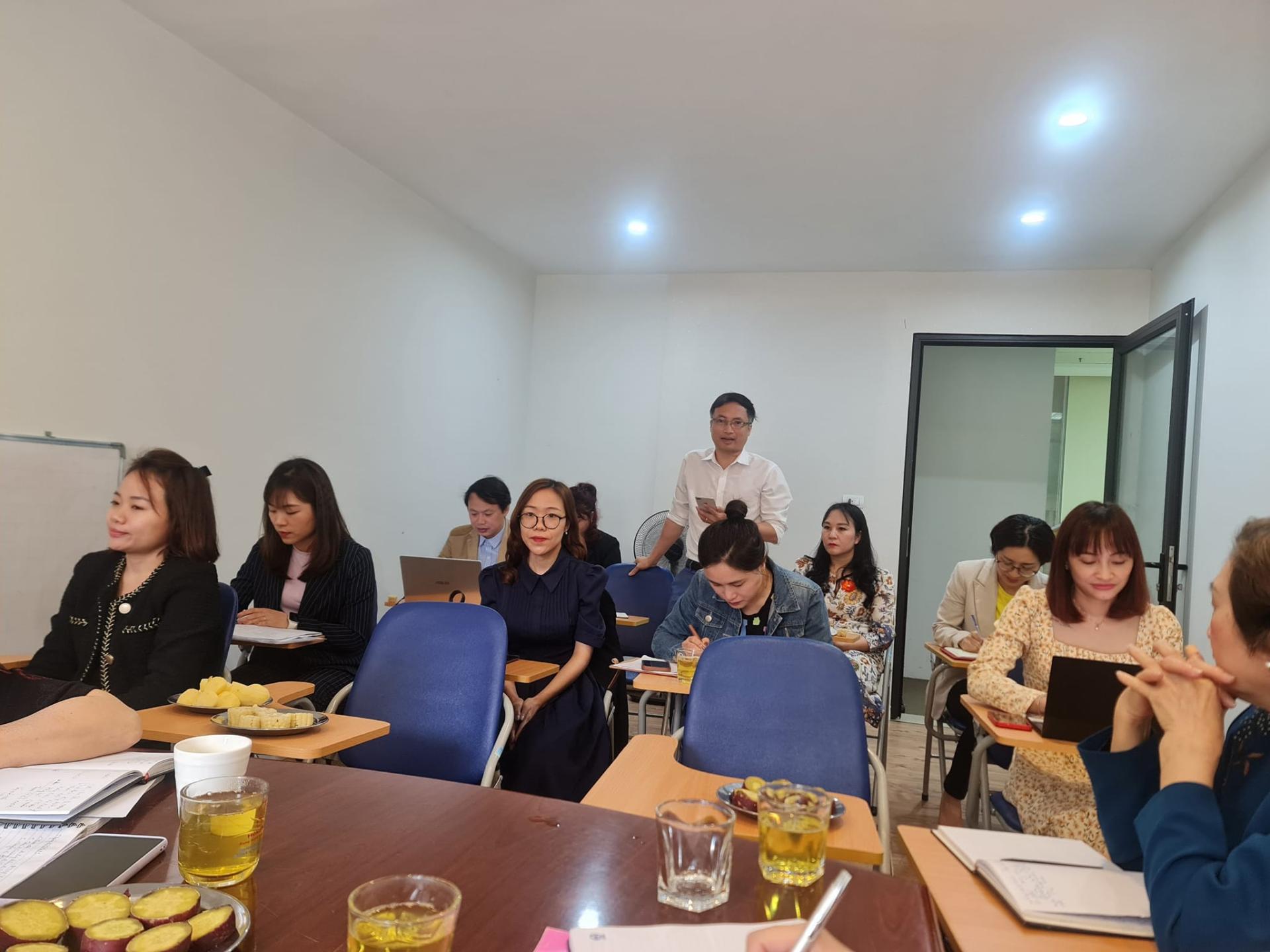Bà Bùi Thị Tuyết - Hiệu trưởng Trường Mầm non VSK báo cáo tại buổi họp
