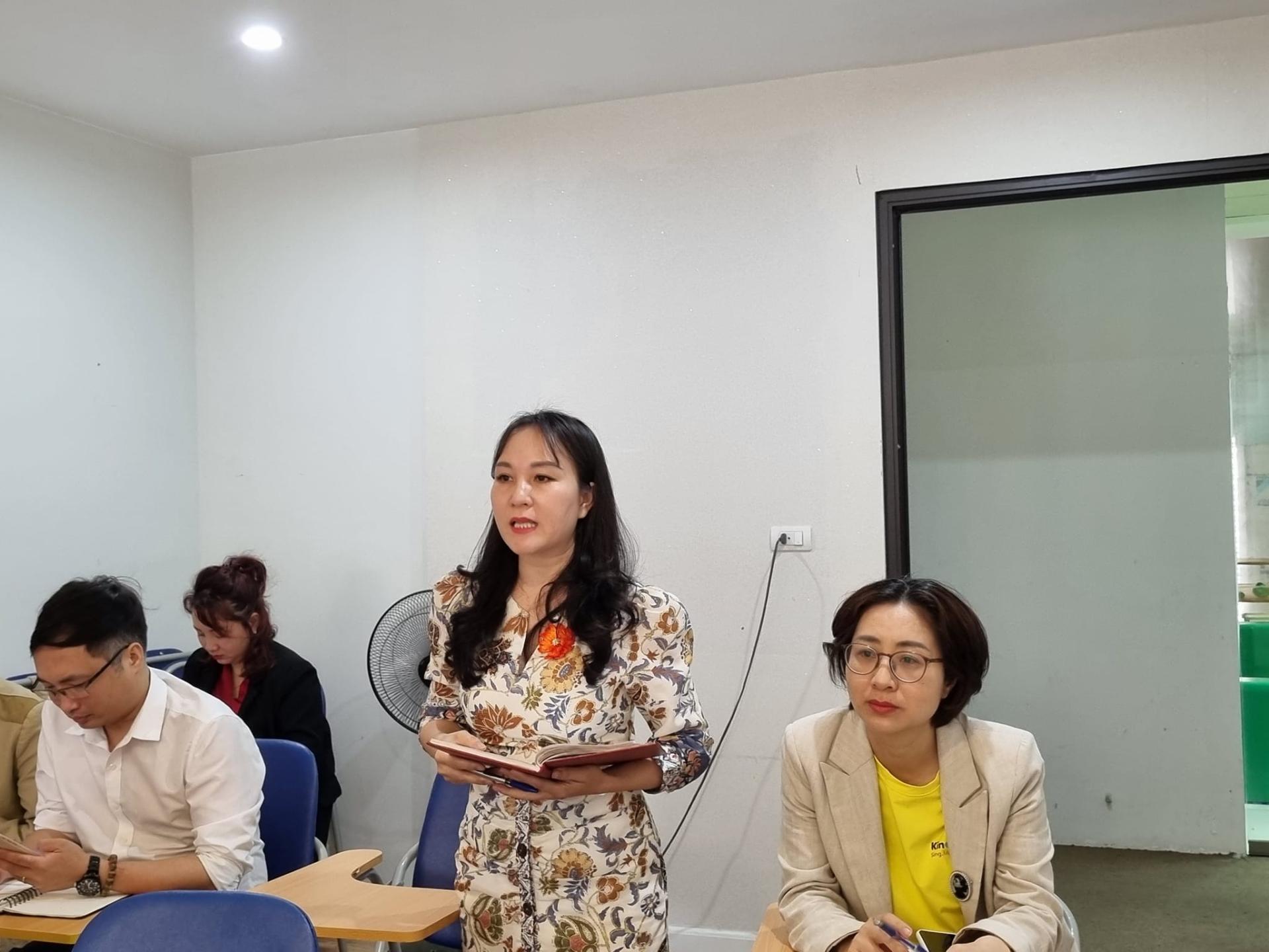 Bà Trần Thu Thuỷ - PGĐ Trung tâm giáo dục và phát triển trí tuệ trẻ em IEV báo có tại buổi họp