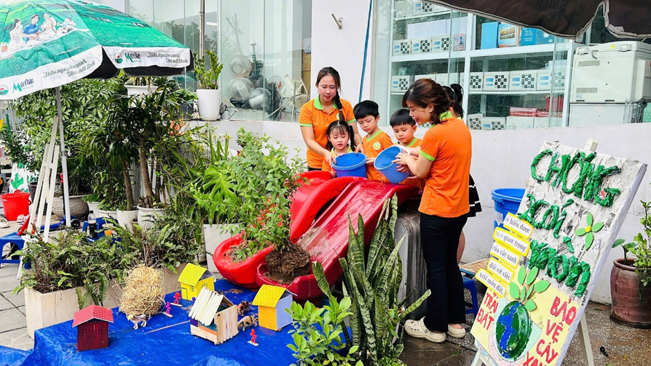 Không chỉ dừng lại ở hoạt động trải nghiệm, các em học sinh của Trường mầm non VSK Thăng Long còn mang đến các tiết mục biểu diễn giàu thông điệp về tình yêu thiên nhiên và ý thức bảo vệ môi trường.