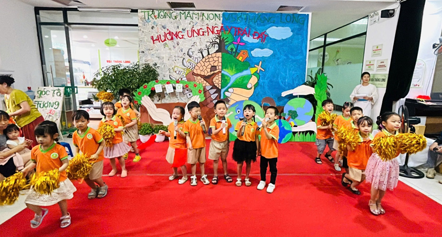 Với phương châm giáo dục lồng ghép trải nghiệm thực tế, các hoạt động tại VSK Thăng Long nhân Ngày Trái đất không chỉ mang tính vui chơi, sáng tạo mà còn giúp các em nhỏ bước đầu tiếp cận với những khái niệm quan trọng như: ô nhiễm môi trường, tái chế, trồng cây, bảo vệ tài nguyên thiên nhiên...