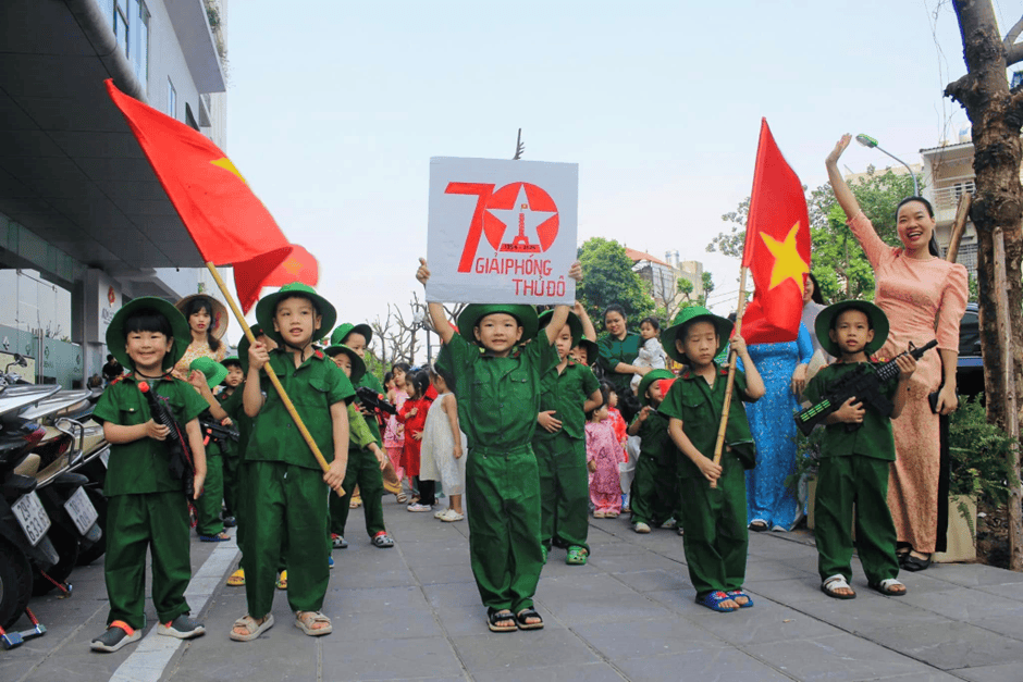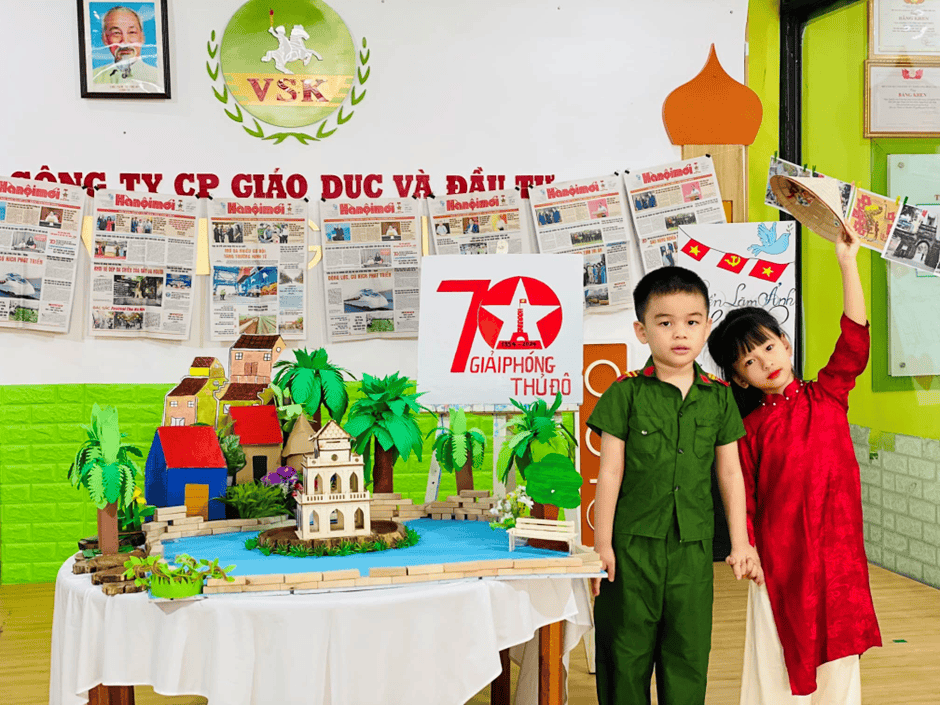 Không chỉ dừng lại ở sách vở, các bé còn được tham gia lễ hội truyền thống, trải nghiệm văn hóa dân tộc, tìm hiểu lịch sử qua những câu chuyện sống động. Những hoạt động này giúp các bé thêm yêu quê hương, tự hào về dân tộc và gắn kết với văn hóa Việt Nam một cách tự nhiên.